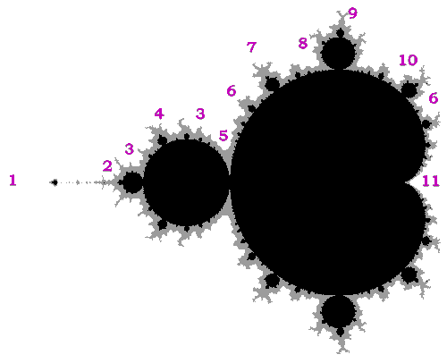 (Iteration),wobei Z0=0 und C den Koordinaten am Bildschirm in der komplexen Ebene entsprechen,